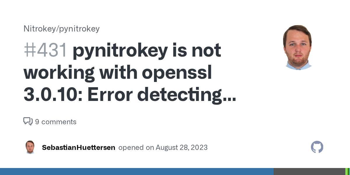After installing via pipx like described in the nitropy manual edit .local/pipx/venvs/pynitrokey/lib/python3.11/site-packages/oscrypto/_openssl/_libcrypto_cffi.py and find the line…